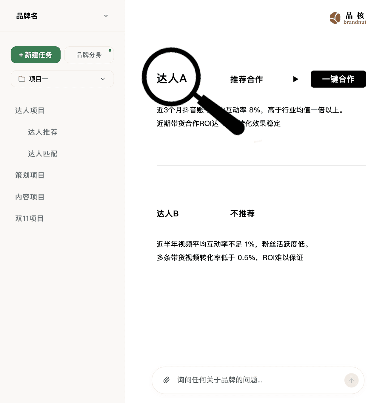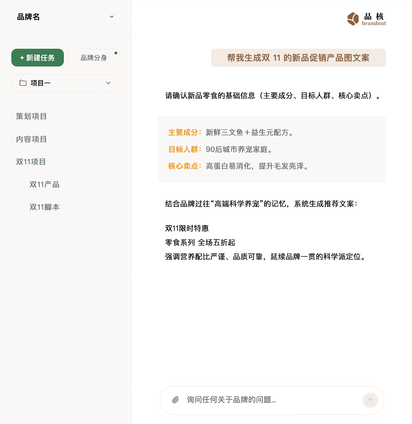 “过去一次 campaign 要 7 个人对齐,效率低得吓人。现在有了品核 AI,每个人都基于同一个品牌分身,整个流程干净利落。”