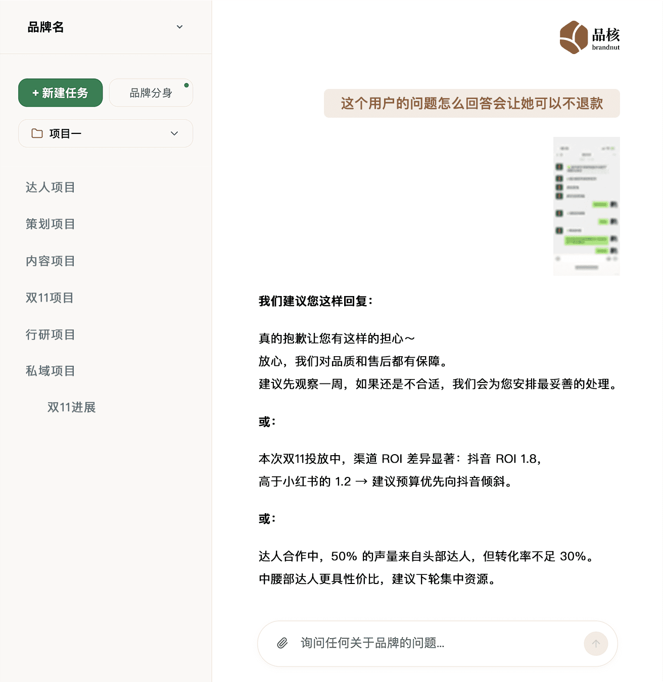 品核不是写字工具,而是老板的战略分身。 适合: 需要守住品牌一致性的创始人/高管 正在做投放、想提升 ROI 的品牌老板 希望团队协作高效、减少损失的中小型企业